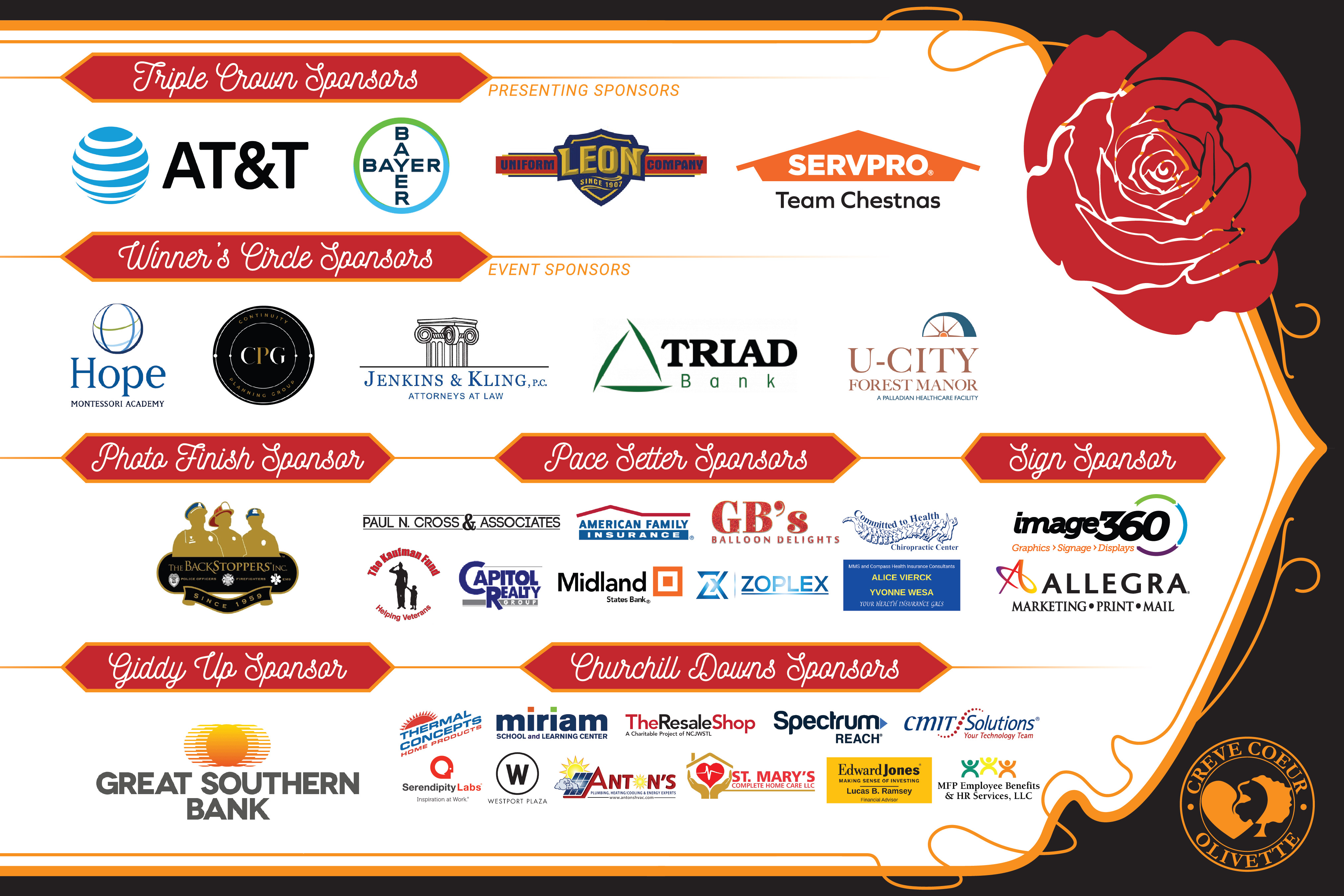 Theme: "Run for the Roses" Presented by AT&T, BAYER, LEON Uniform Company, and SERVPRO Team Chestnas