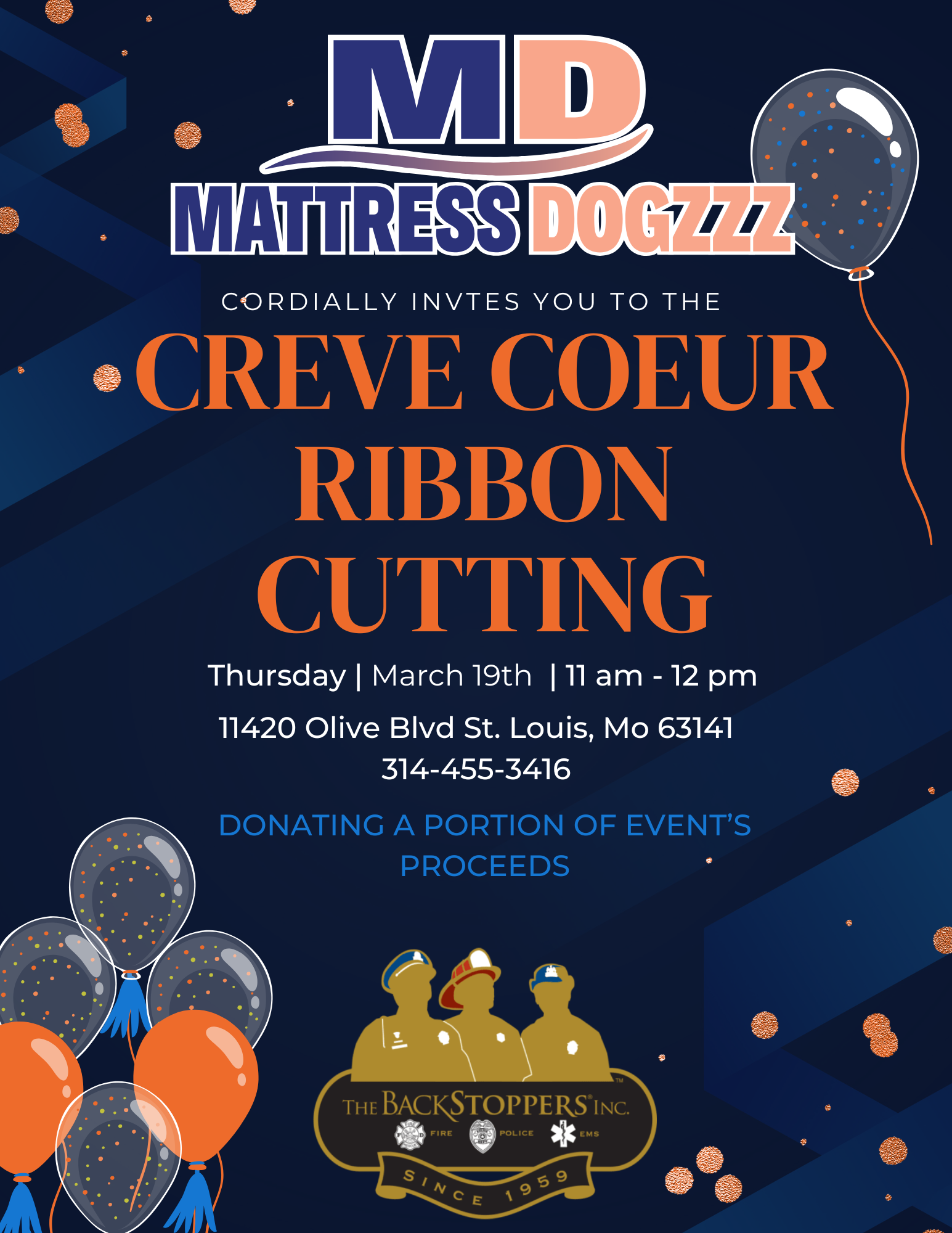Come check out their new store, meet and support our new member! You can enjoy some refreshments at the celebration. They will also be donating a portion of events proceeds to Backstoppers.